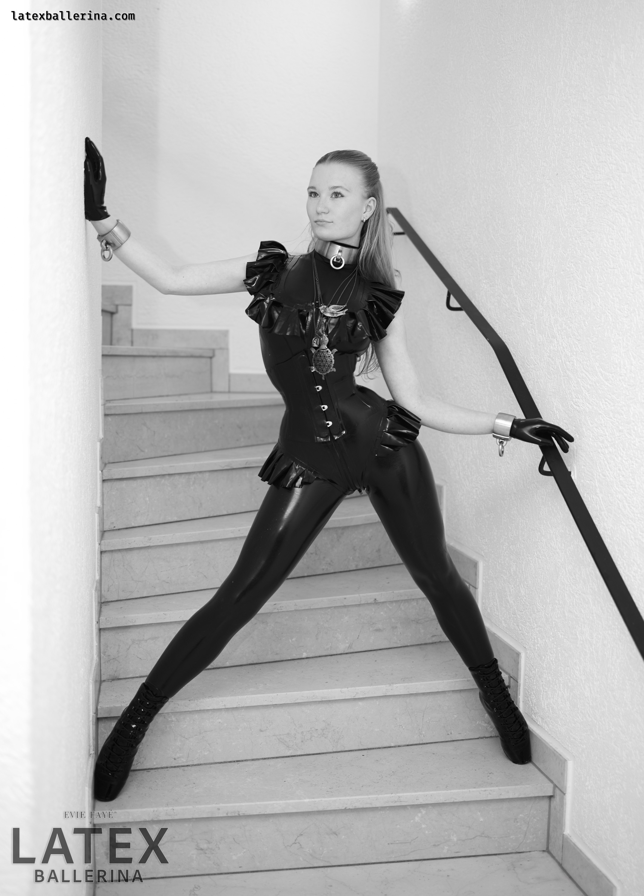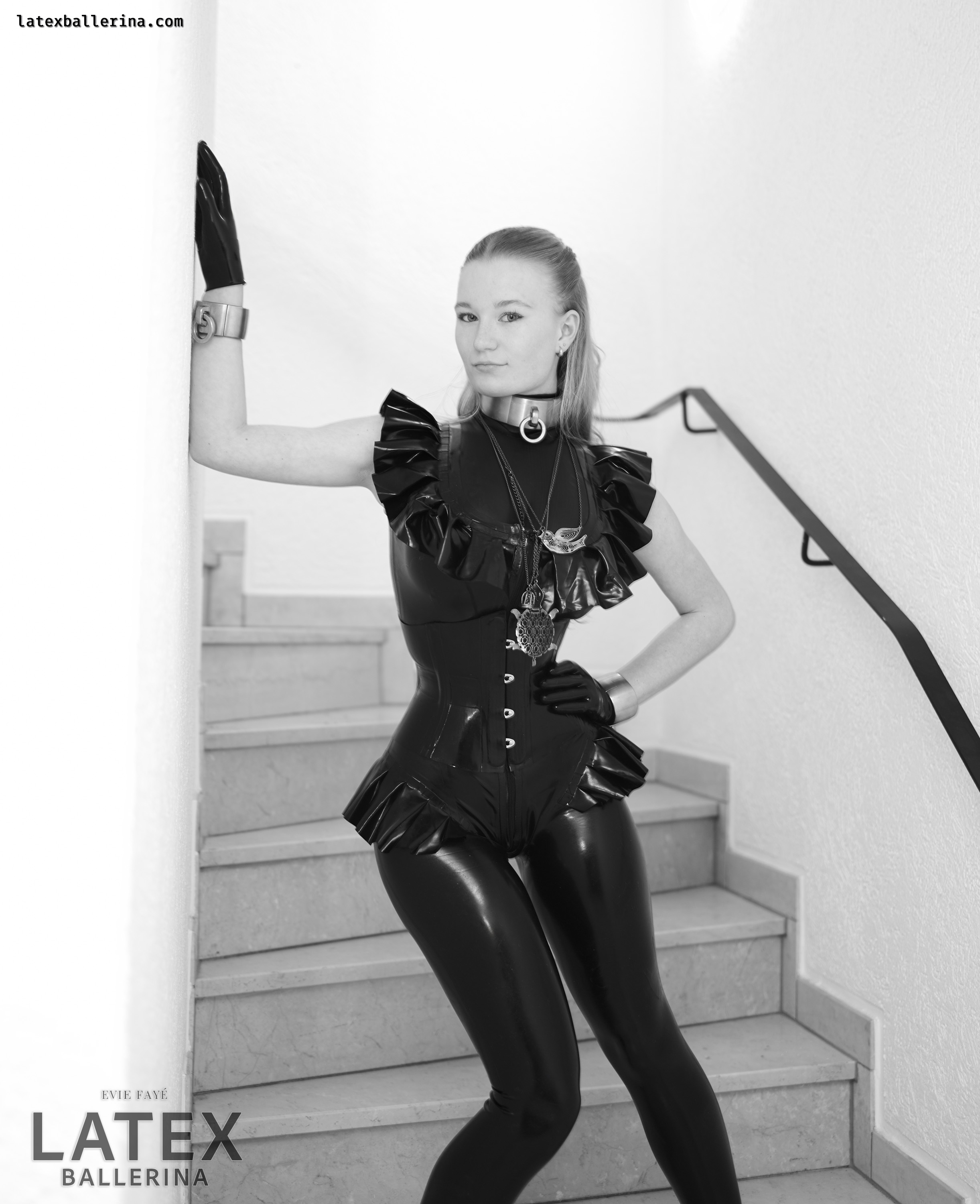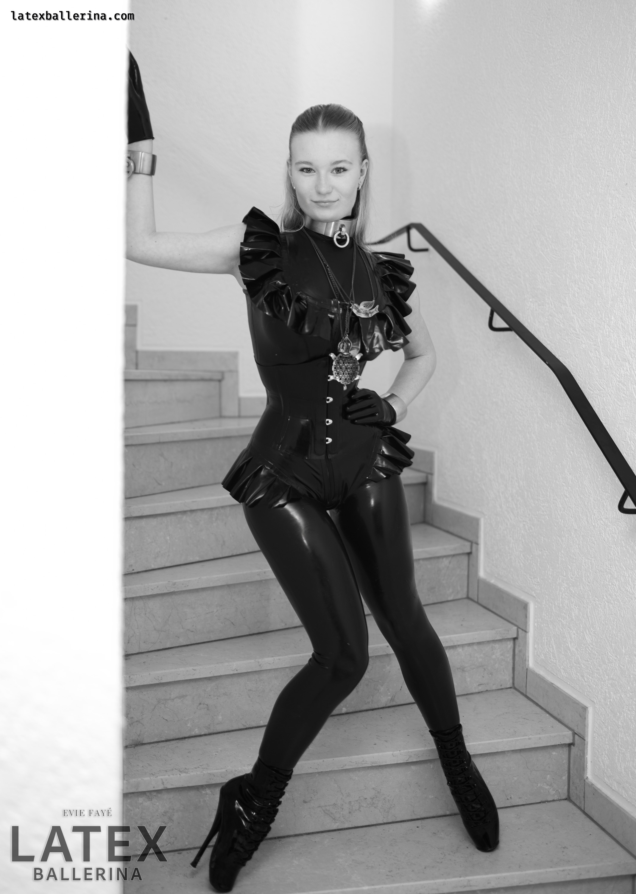 Treppen in Ballet Heels zu steigen, ist nichts, das man eilig tut. Jeder Schritt wird bewusst, fast meditativ. Das Gleichgewicht, die Spannung, die kleinen Siege bei jeder Bewegung – all das gehört zur Ruhe. Ich wollte niemanden beeindrucken; ich wollte nur den Moment fühlen: das Latex auf der Haut, das Geräusch der Absätze auf dem Steinboden und die Stille, wenn man merkt, dass man etwas beherrscht, das kaum jemand wagt.